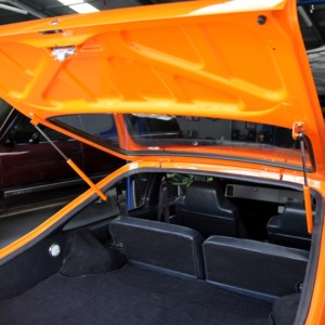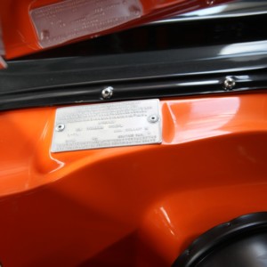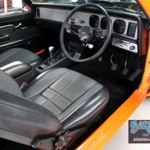 It is a Genuine SS Torana hatchback, ordered in Papaya Orange, with Slate Black interior, a 4.2 litre V8 engine and 4 speed manual gearbox.