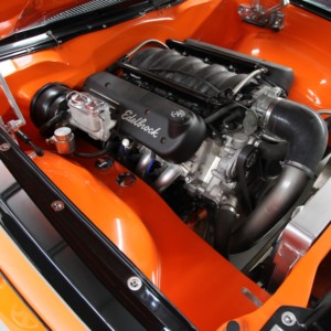 custom extractors, exhaust, tail shaft, mounts, sump, etc to suit the Torana application. A huge fuel system was configurated using a Brown Davies